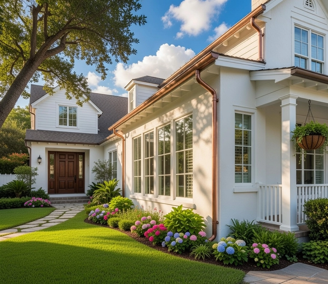 Upgrade your home with premium copper gutter installation Florida services. Copper gutters offer natural beauty, outstanding durability, and long-term value. They develop a rich patina over time, boosting curb appeal while providing dependable rainwater protection.
